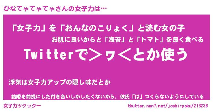 | ヘコむあだ名 | 『ひなにー』『牛乳』『ひな太郎』 |