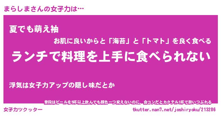 | ヘコむあだ名 | 『まらふぇ~』『なまこ酢』 |