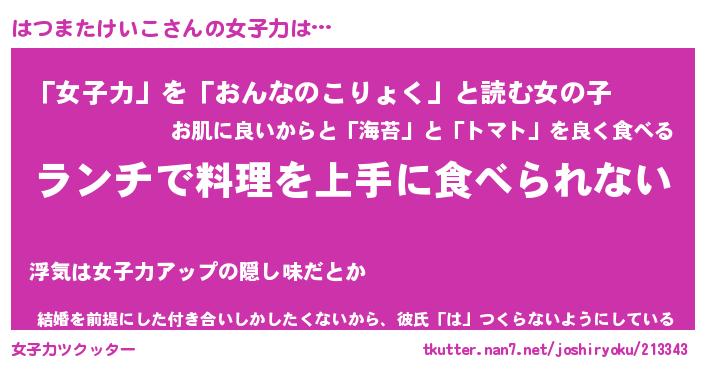 | 恥ずかしいあだ名 | 『プリティーはつまたけいこ』『はつちん』 |