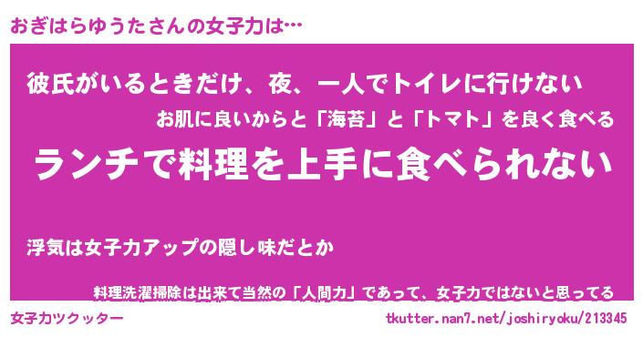 | 恥ずかしいあだ名 | 『プリティーおぎはらゆうた』『おぎちん』 |
