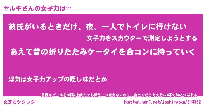 | ヘコむあだ名 | 『ヤルにゅー』『つくし』『ヤルっぺ』 |