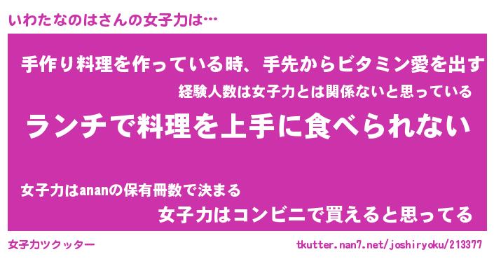 | ヒーロー風カッコイイあだ名 | 『スーパーイワタナノハ』『天弓騎士イワ』 |