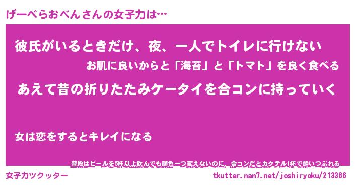| ヘコむあだ名 | 『げーにー』『つくし』『げーっちょ』 |
