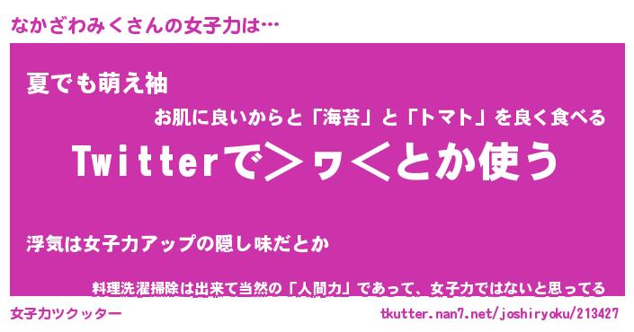 | 恥ずかしいあだ名 | 『プリティーなかざわみく』『なかっちょ』 |