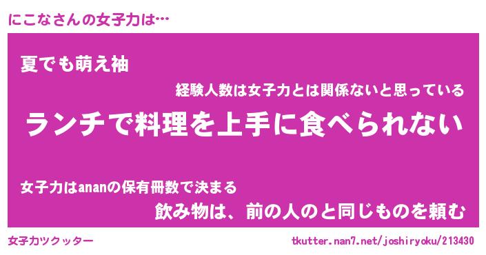 | ヘコむあだ名 | 『にこふぇ~』『なまこ酢』 |