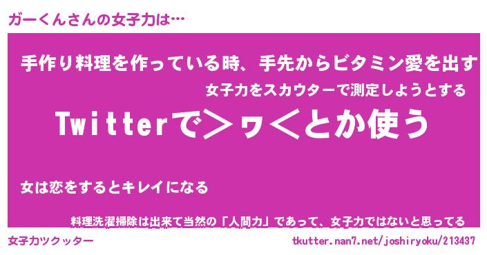 | ヘコむあだ名 | 『ガーもー』『牛乳』『ガー太郎』 |
