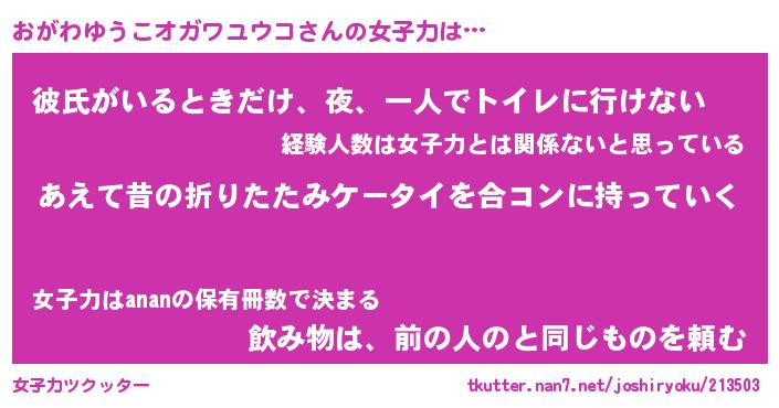 | 肩書あだ名 | 『おがわゆうこオガワユウコ御曹司』 |