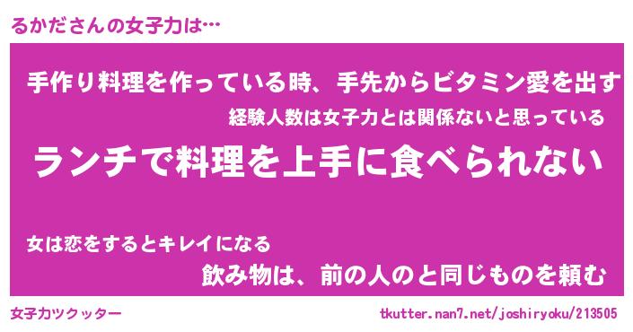 | 意味不明あだ名 | 『ペロリンるかだ』『るかだフォーエバー』 |