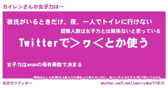 | 意味不明あだ名 | 『ペロリンカイレン』『永久保存カイレン』 |