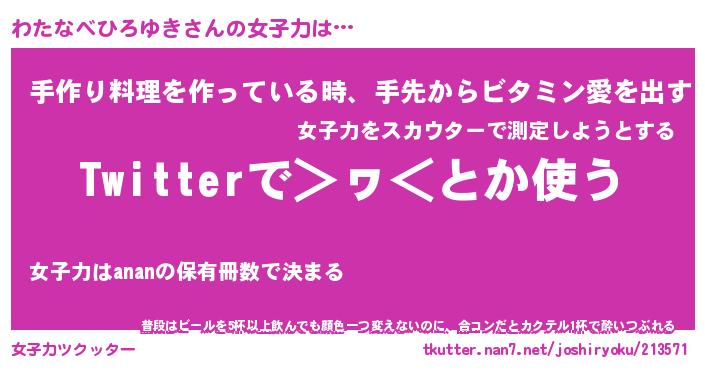 | ポケモン風あだ名 | 『ワタチュウ』『ワタナダネ』 |