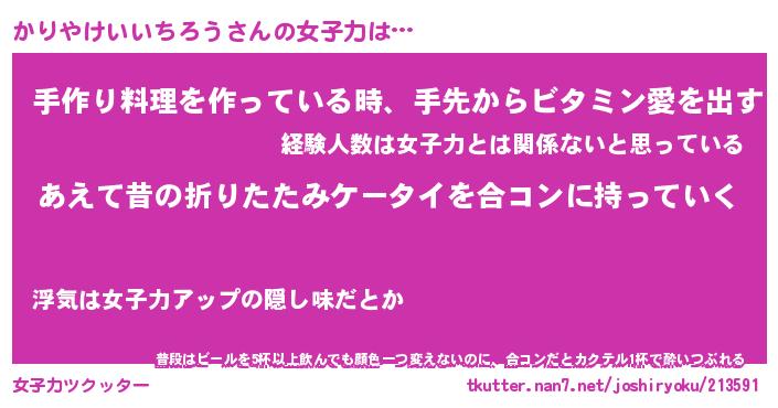 | ヘコむあだ名 | 『かりもー』『つくし』『かりを』 |