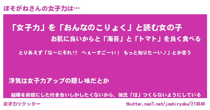| ヘコむあだ名 | 『ほそにゅー』『酢こんぶ』 |