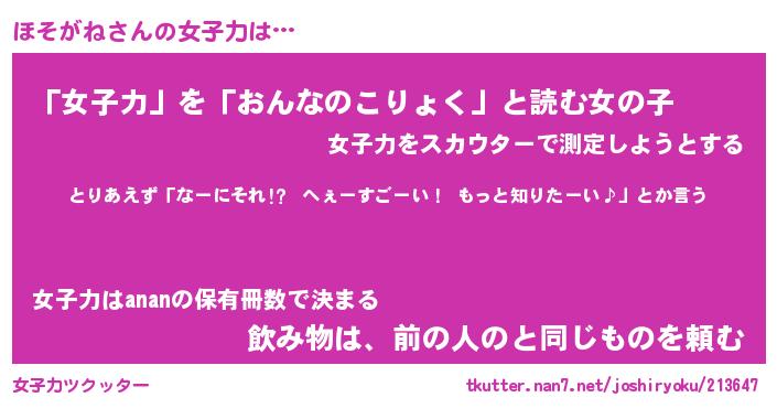 | ヘコむあだ名 | 『ほそっふぃ~』『レバニラ』 |