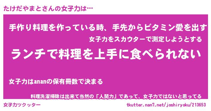 | ヘコむあだ名 | 『たけふぇ~』『つくし』『たけっぺ』 |