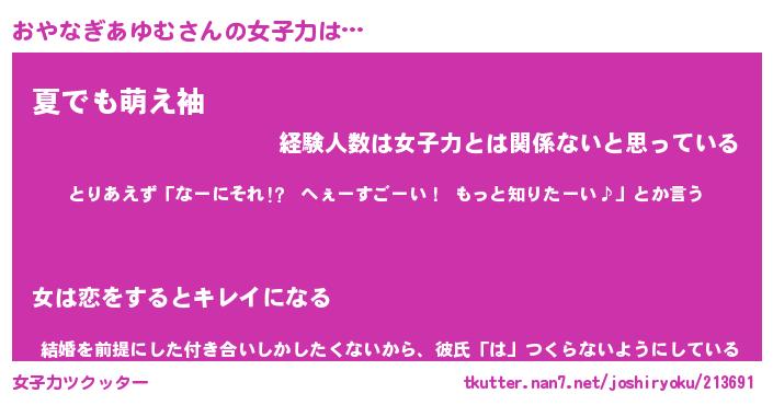 | ヘコむあだ名 | 『おやにゅー』『酢こんぶ』 |