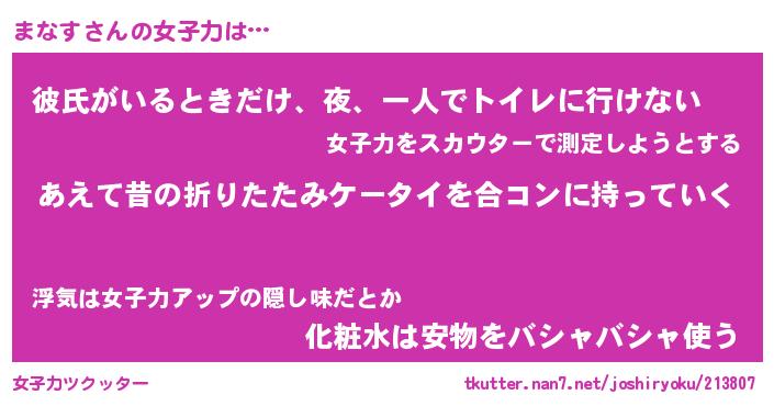 | 意味不明あだ名 | 『ペロリンまなす』『まなすフォーエバー』 |
