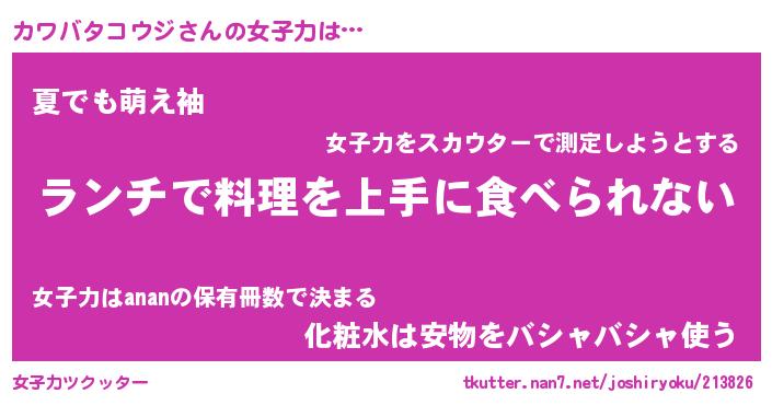 | 胡散臭い通販商品みたいなあだ名 | 『億万長者になれるブレスレット…その名も「カワバタコウジ」』 |