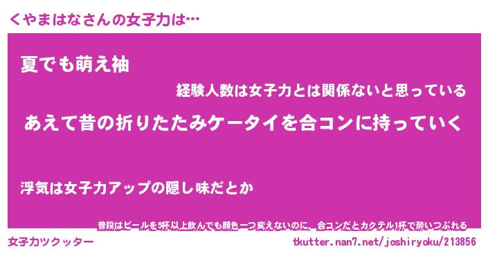 | 恥ずかしいあだ名 | 『プリティーくやまはな』『くやっちょ』 |