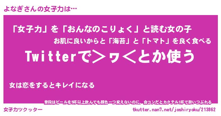 | ヘコむあだ名 | 『よなにー』『つくし』『よなぷりん』 |