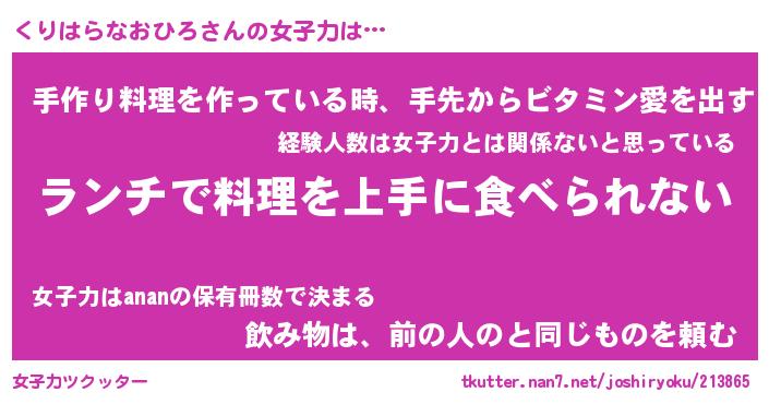 | ヘコむあだ名 | 『くりにゅー』『つくし』『くりを』 |