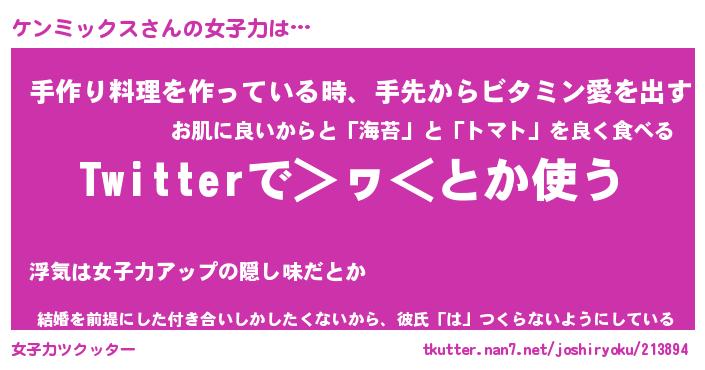 | ヘコむあだ名 | 『ケンふぇ~』『牛乳』『ケンぷりん』 |