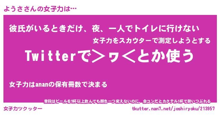 | ヘコむあだ名 | 『ようっふぃ~』『豆乳』『ようを』 |