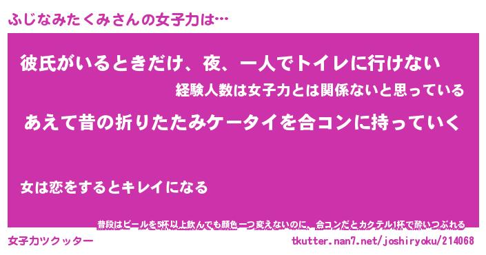 | ヘコむあだ名 | 『ふじふぇ~』『レバニラ』 |