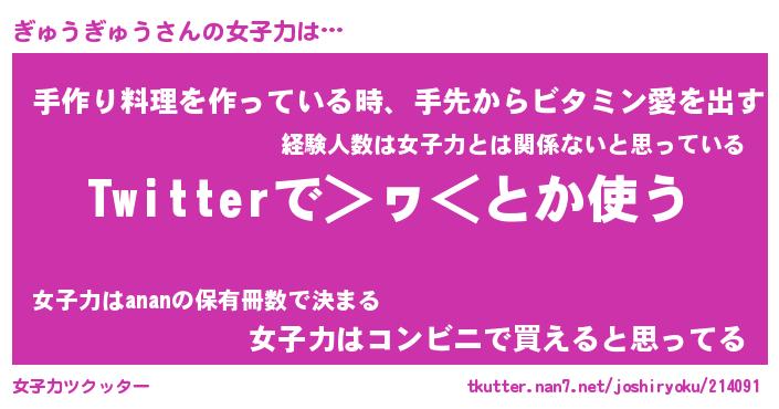 | ヘコむあだ名 | 『ぎゅふぇ~』『つくし』『ぎゅお』 |
