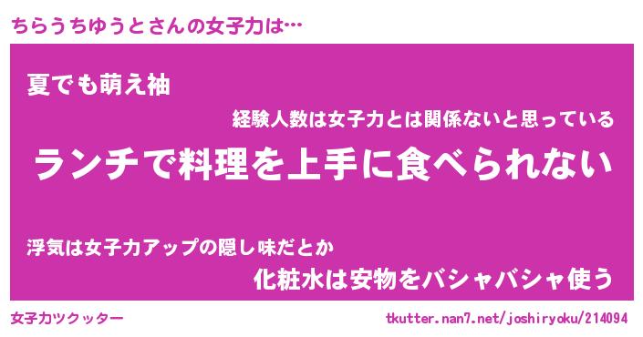 | ヘコむあだ名 | 『ちらにゅー』『酢こんぶ』『ちらお』 |