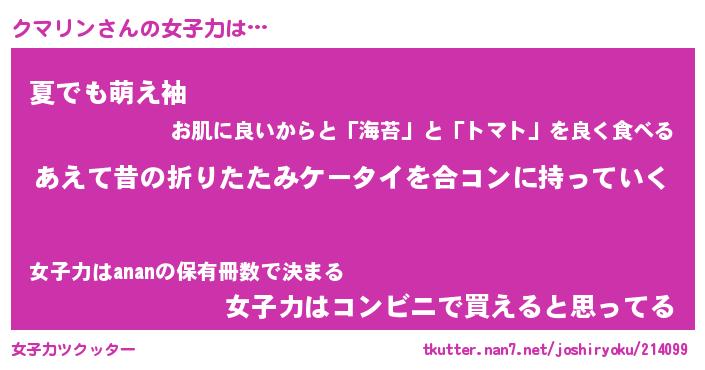 | ファンタジー風あだ名 | 『クマフェル』『エターナルクマリンー』 |