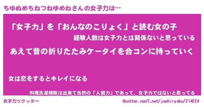 | 女子向けラノベタイトル風あだ名 | 『(仮)ちゆぬめちねつねゆめねのやんごとなき事情』 |