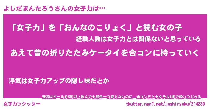 | ヘコむあだ名 | 『よしにー』『酢こんぶ』『よしっぺ』 |