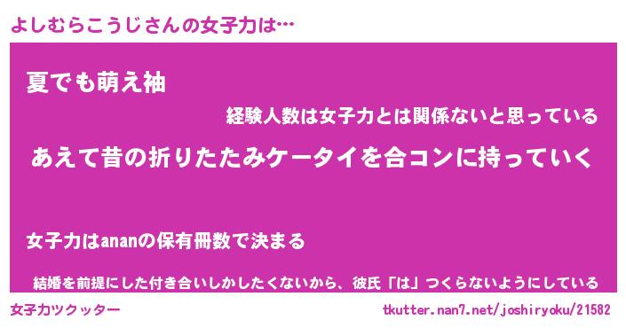 | 恥ずかしいあだ名 | 『プリティーよしむらこうじ』『よしちん』 |