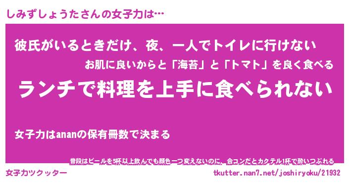 | 恥ずかしいあだ名 | 『プリティーしみずしょうた』『しみちん』 |