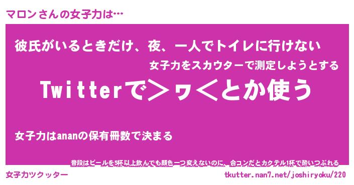 | ファンタジー風あだ名 | 『マロフェル』『エターナルマロンー』 |