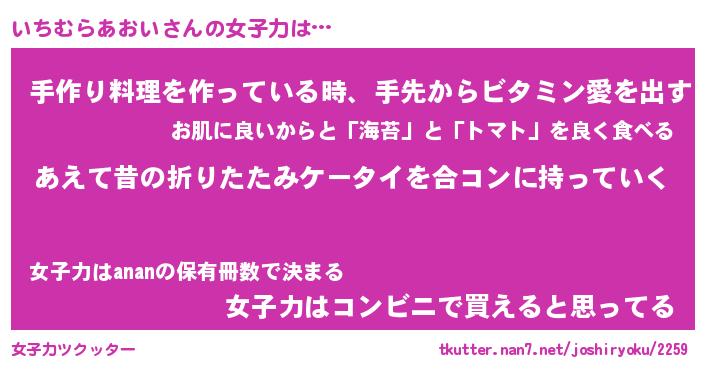 | 胡散臭い通販商品みたいなあだ名 | 『必ず成功するブレスレット…その名も「いちむらあおい」』 |