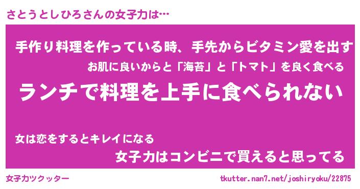 | ヘコむあだ名 | 『さとにゅー』『豆乳』『さと太郎』 |