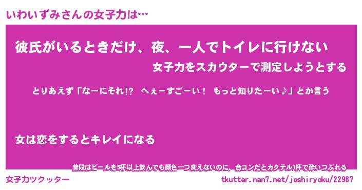 | ファンタジー風あだ名 | 『イワフェル』『エターナルイワイズミー』 |