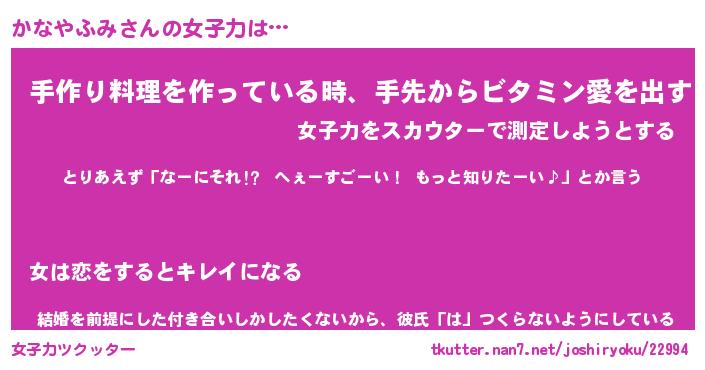 | ヘコむあだ名 | 『かなふぇ~』『つくし』 |