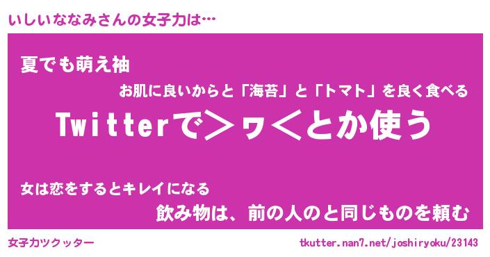 | 女子向けラノベタイトル風あだ名 | 『いしいななみ姫と円卓の騎士』 |