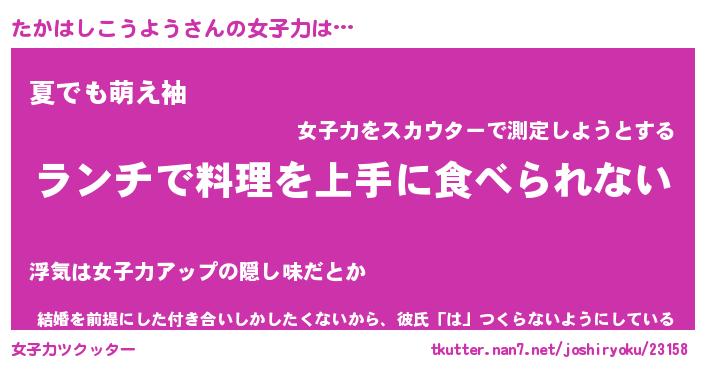 | ヘコむあだ名 | 『たかにゅー』『酢こんぶ』『たかお』 |