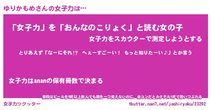 | ファンタジー風あだ名 | 『ユリフェル』『エターナルユリカモメー』 |