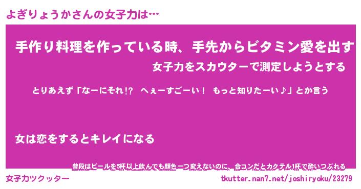 | 恥ずかしいあだ名 | 『プリティーよぎりょうか』『よぎっちょ』 |