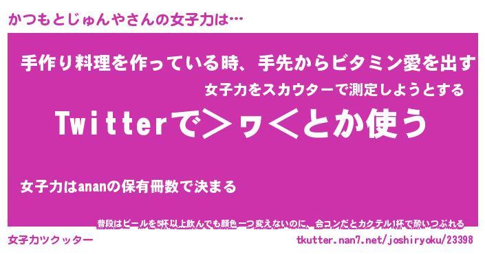 | 胡散臭い通販商品みたいなあだ名 | 『モテモテ間違いなし水晶球…その名も「かつもとじゅんや」』 |