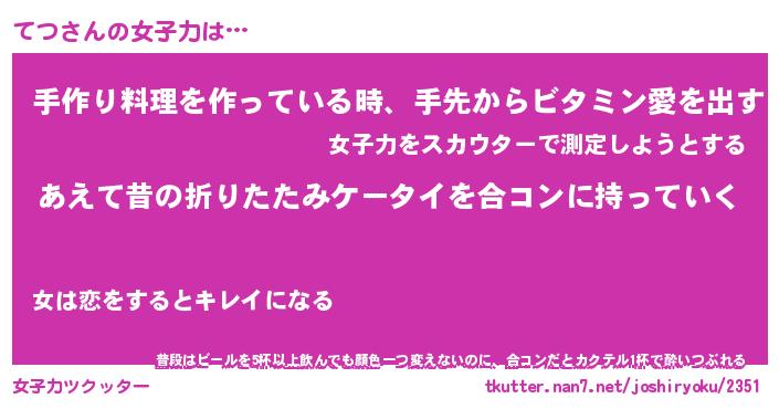 | ヘコむあだ名 | 『てつもー』『つくし』『てつっ子』 |