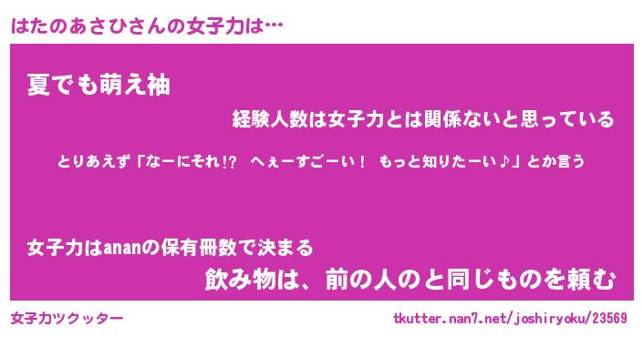 | ヘコむあだ名 | 『はたもー』『なまこ酢』『はた太郎』 |