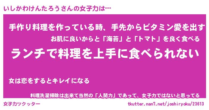 | 料理風あだ名 | 『ネギたっぷりいしかわけんたろうの南蛮漬け』 |