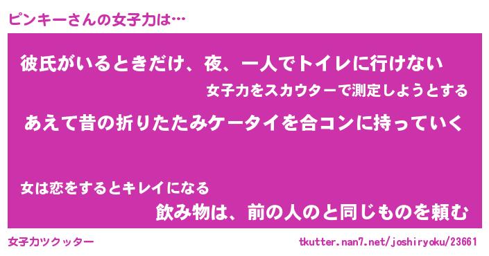 | ヘコむあだ名 | 『ピンふぇ~』『豆乳』『ピンっちょ』 |