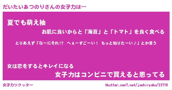 | 女子向けラノベタイトル風あだ名 | 『だいたいあつのり姫と円卓の騎士』 |