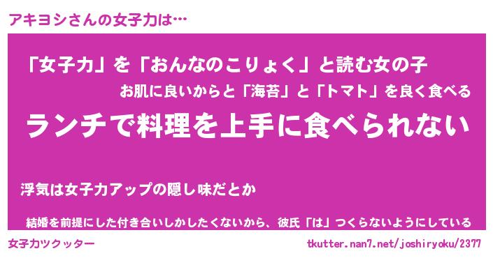 | ヘコむあだ名 | 『アキふぇ~』『レバニラ』『アキお』 |